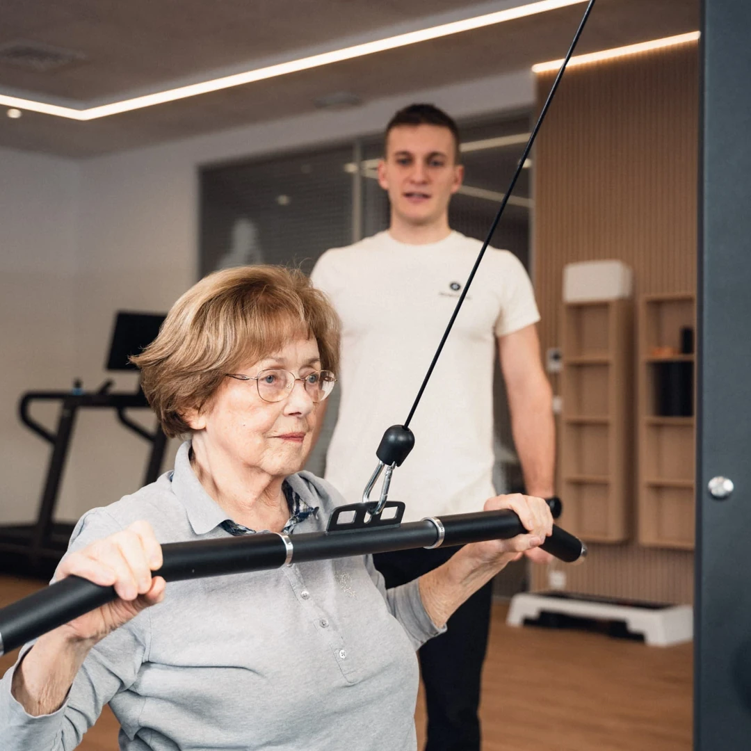 Zato vadba pri nas ni le “napor”, temveč je premišljen proces, v katerem se počutite varno in razumljeno ter opazite, kako vaše telo iz meseca v mesec zmore več. To dosežemo tako, tekom treningov opravljamo meritve, beležimo vaš napredek in po potrebi programe vadbe ustrezno prilagajamo.